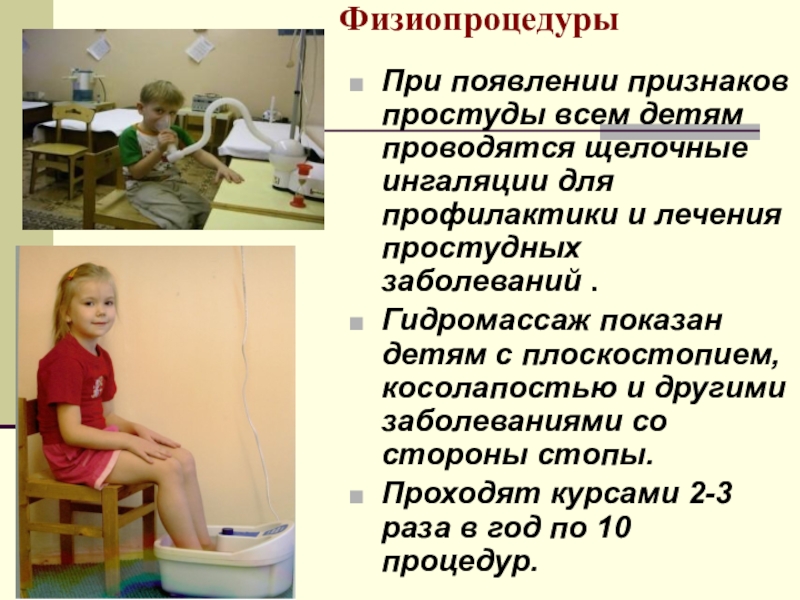 При появлении признаков простуды всем детям проводятся щелочные ингаляции для профилактики и лечения простудных заболеваний .