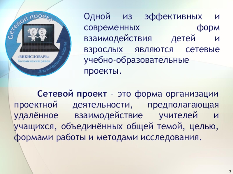 Одной из эффективных и современных форм взаимодействия детей и взрослых являются сетевые учебно-образовательные проекты.