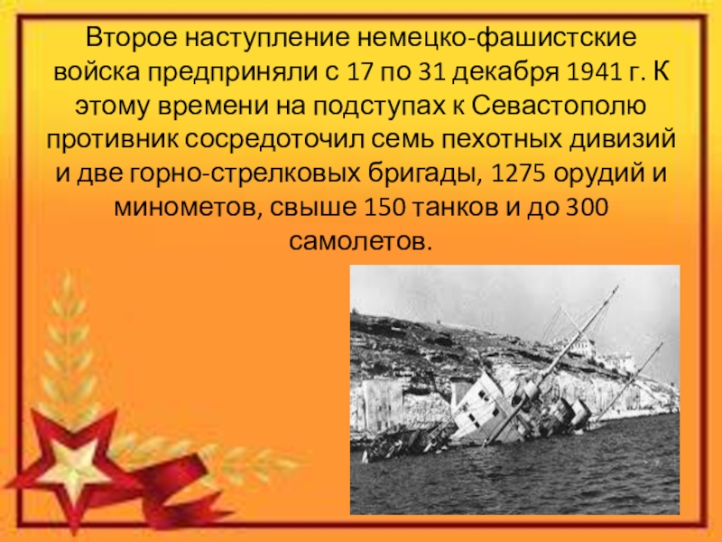 Слайд 7Второе наступление немецко-фашистские войска предприняли с 17 по 31 декабря 1941