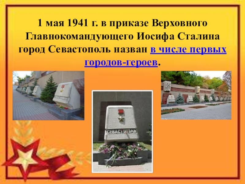Слайд 171 мая 1941 г. в приказе Верховного Главнокомандующего Иосифа Сталина город