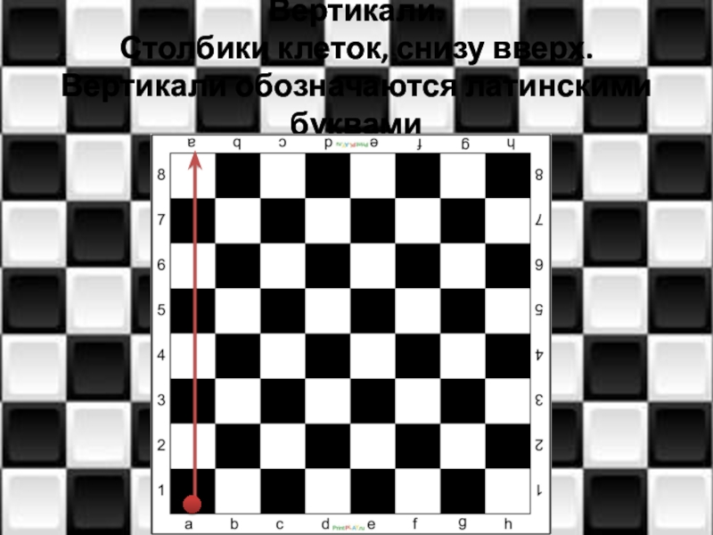 Слайд 10Вертикали. Столбики клеток, снизу вверх. Вертикали обозначаются латинскими буквами
