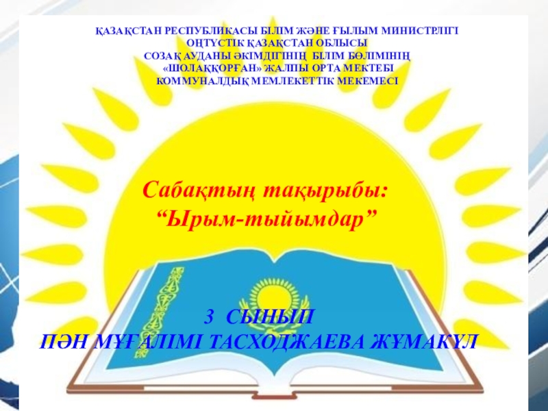 ПӘН МҰҒАЛІМІ ТАСХОДЖАЕВА ЖҰМАКҮЛ
