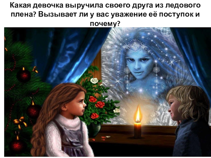 Слайд 37Какая девочка выручила своего друга из ледового плена? Вызывает ли у