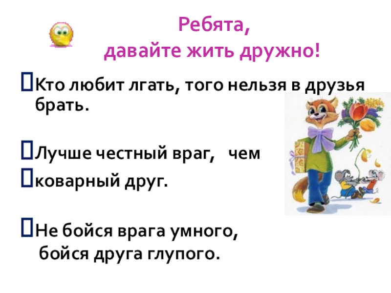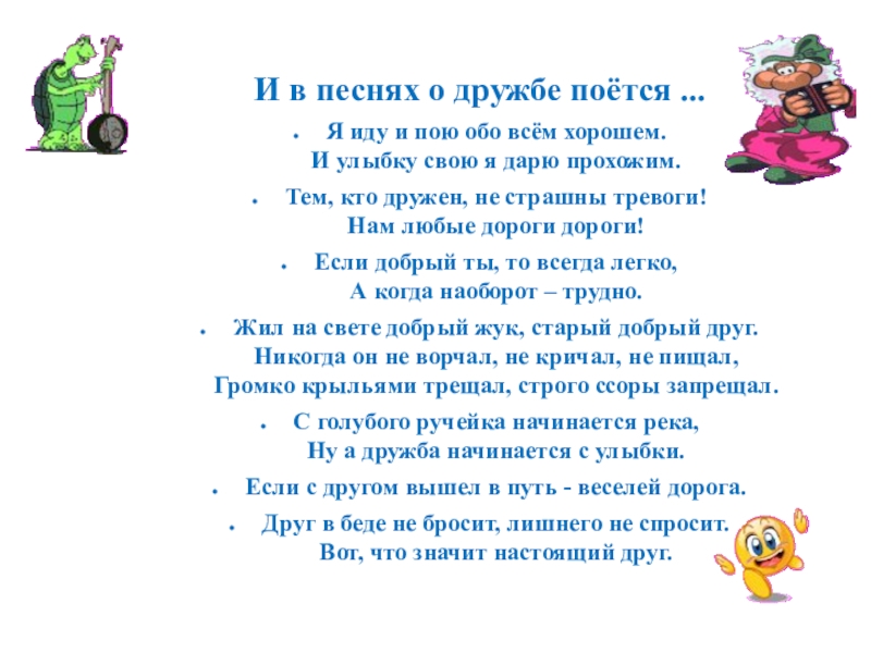 С голубого ручейка начинается река, Ну а дружба начинается с улыбки.