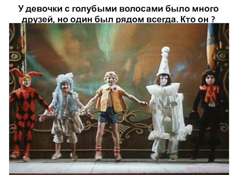 Слайд 40У девочки с голубыми волосами было много друзей, но один был