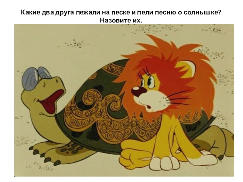 Слайд 39Какие два друга лежали на песке и пели песню о солнышке?