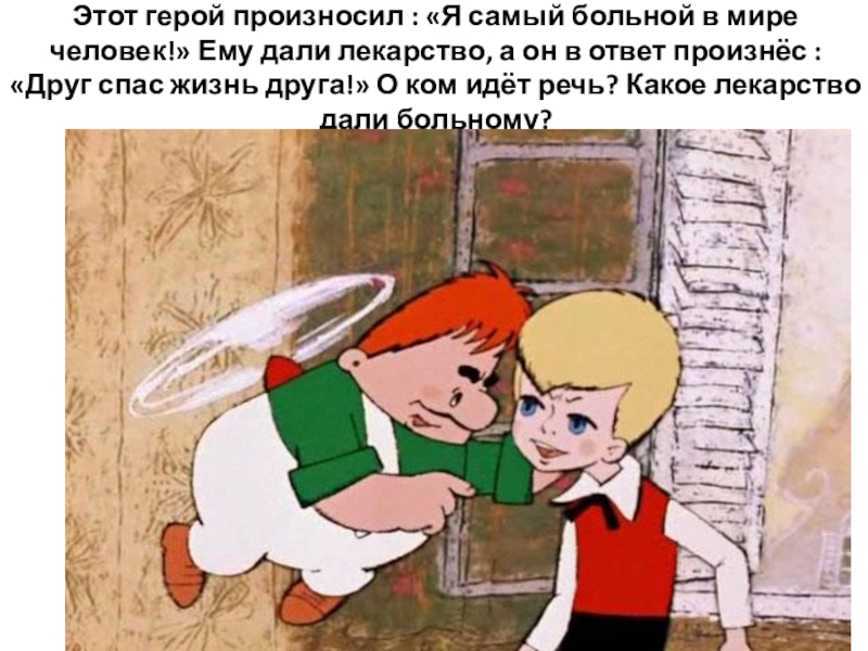 Слайд 38Этот герой произносил : «Я самый больной в мире человек!» Ему