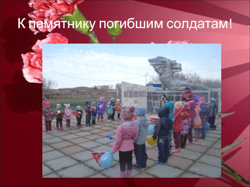 Слайд 8 К памятнику погибшим солдатам!