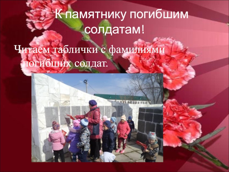 Слайд 4К памятнику погибшим солдатам!
