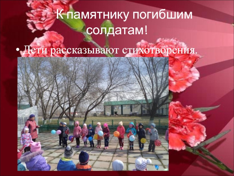 К памятнику погибшим солдатам!Дети рассказывают стихотворения.