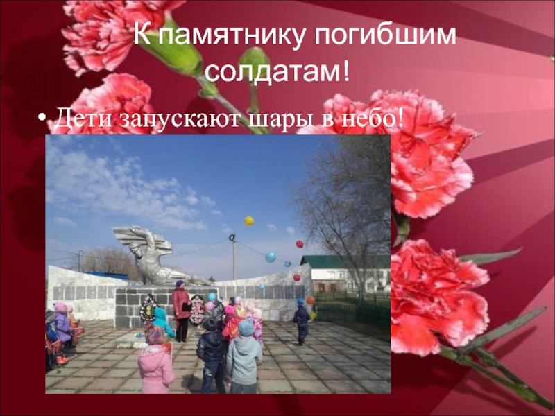 К памятнику погибшим солдатам!Дети запускают шары в небо!