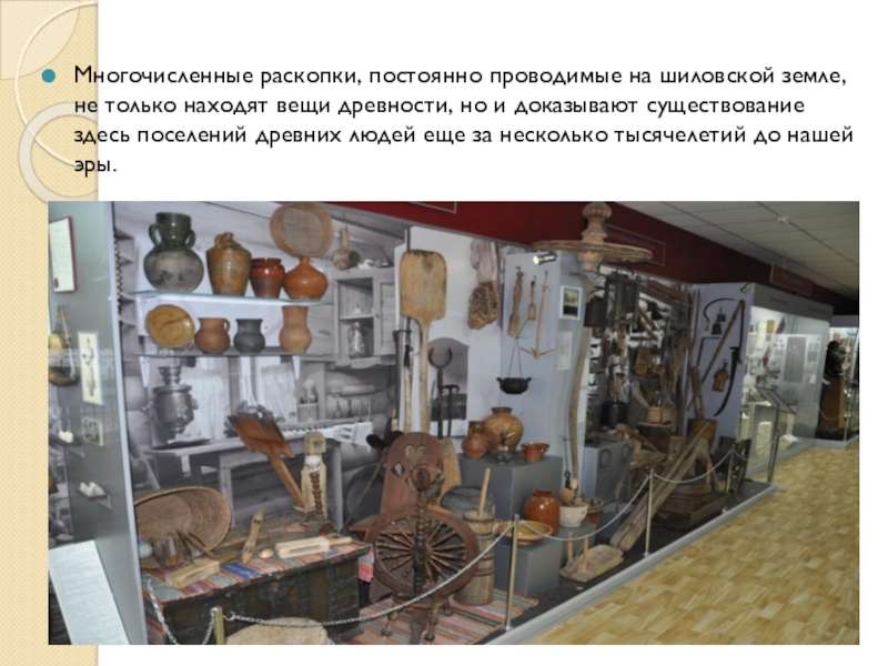 Слайд 5Многочисленные раскопки, постоянно проводимые на шиловской земле, не только находят вещи