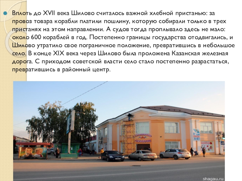 Слайд 6Вплоть до XVII века Шилово считалось важной хлебной пристанью: за провоз