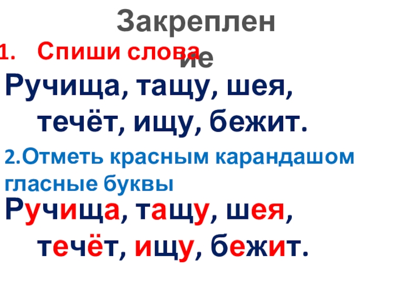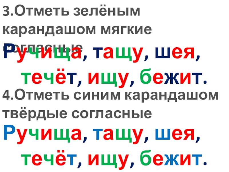 Ручища, тащу, шея, течёт, ищу, бежит.