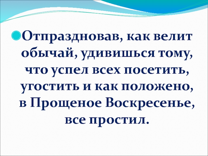 Слайд 26Отпраздновав, как велит обычай, удивишься тому, что успел всех посетить, угостить