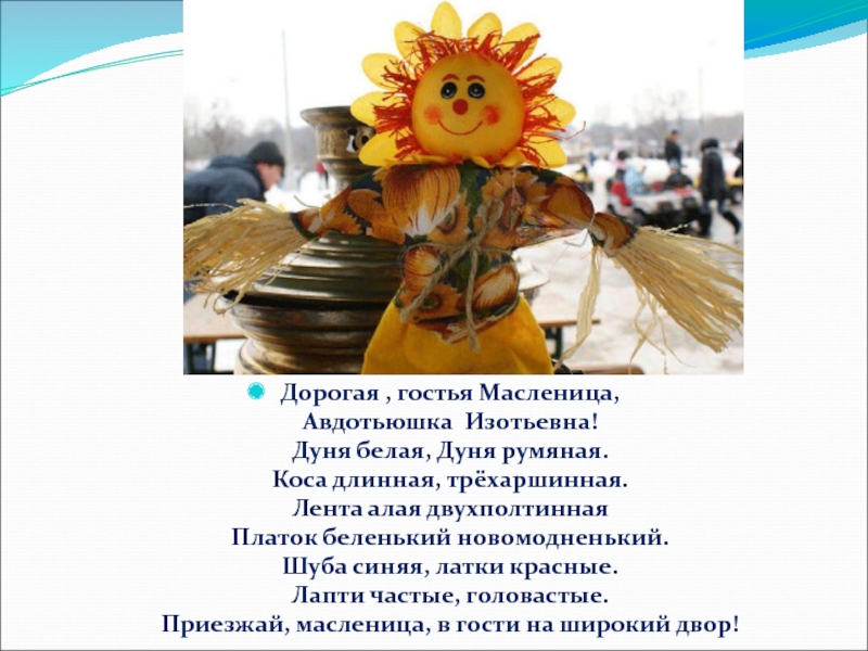 Слайд 2Дорогая , гостья Масленица,