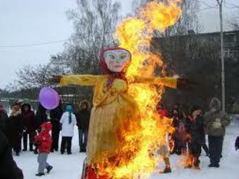 Сжигают Масленицу и приговаривают: