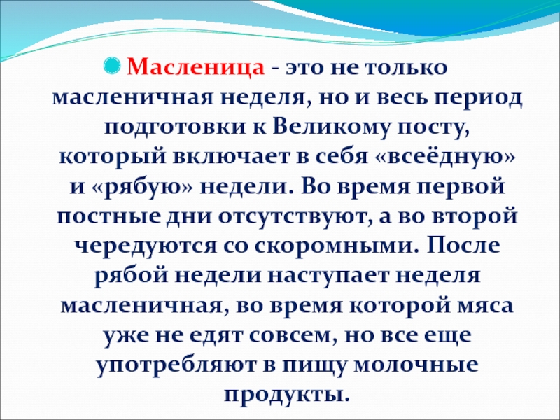 Слайд 5Масленица - это не только масленичная неделя, но и весь период