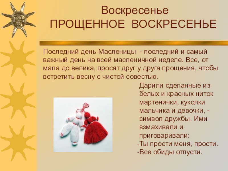 Дарили сделанные из белых и красных ниток мартенички, куколки мальчика и девочки, - символ дружбы. Ими взмахивали и приговаривали: