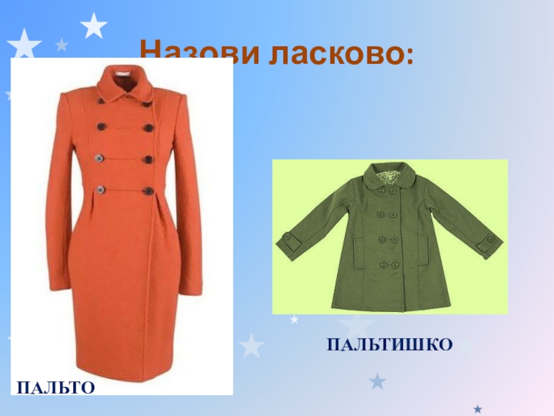 Назови ласково:ПАЛЬТОПАЛЬТИШКО