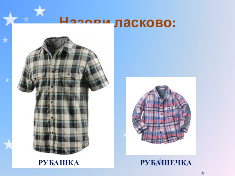 Назови ласково:РУБАШЕЧКАРУБАШКА
