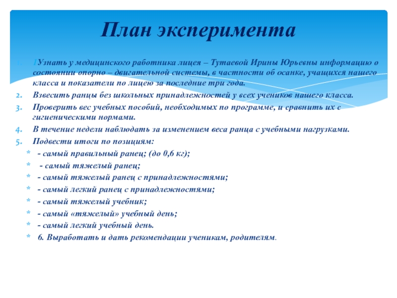 План эксперимента