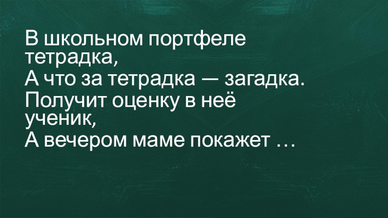 В школьном портфеле тетрадка,А что за тетрадка — загадка.Получит оценку в неё ученик,А вечером маме