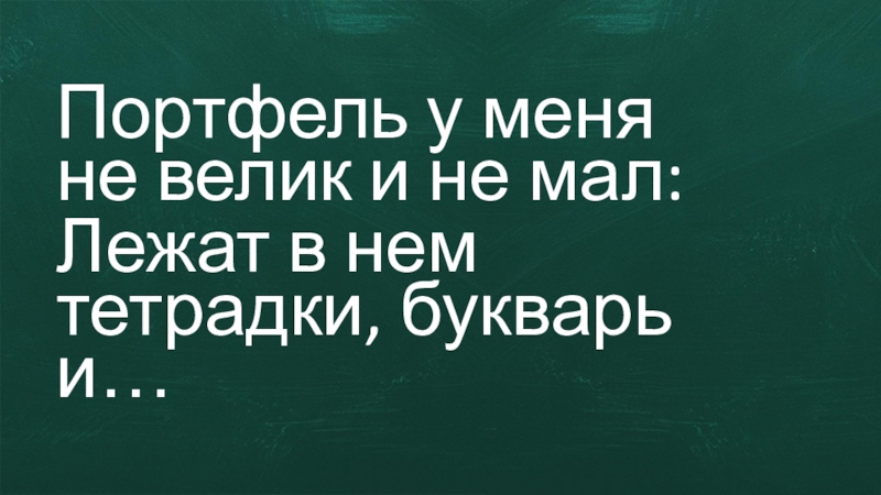 Портфель у меня не велик и не мал:Лежат в нем тетрадки, букварь и…