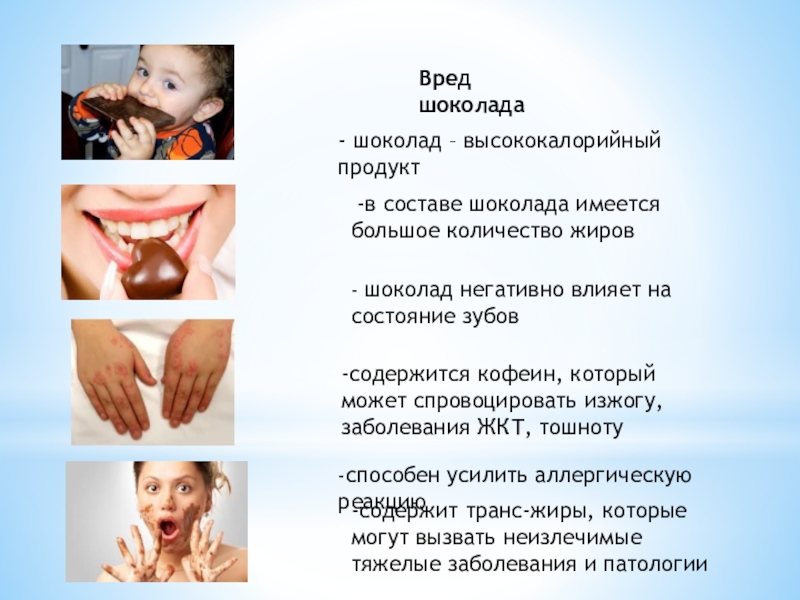 - шоколад негативно влияет на состояние зубов