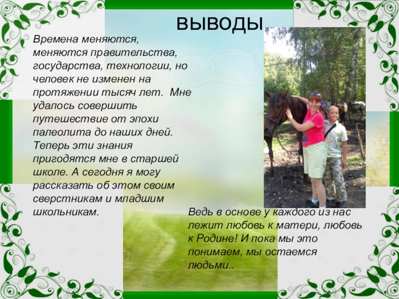 Ведь в основе у каждого из нас лежит любовь к матери, любовь к Родине! И пока мы это понимаем, мы остаемся людьми..