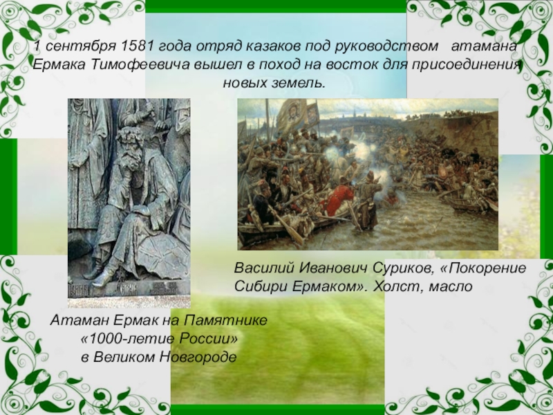 Василий Иванович Суриков, «Покорение Сибири Ермаком». Холст, масло