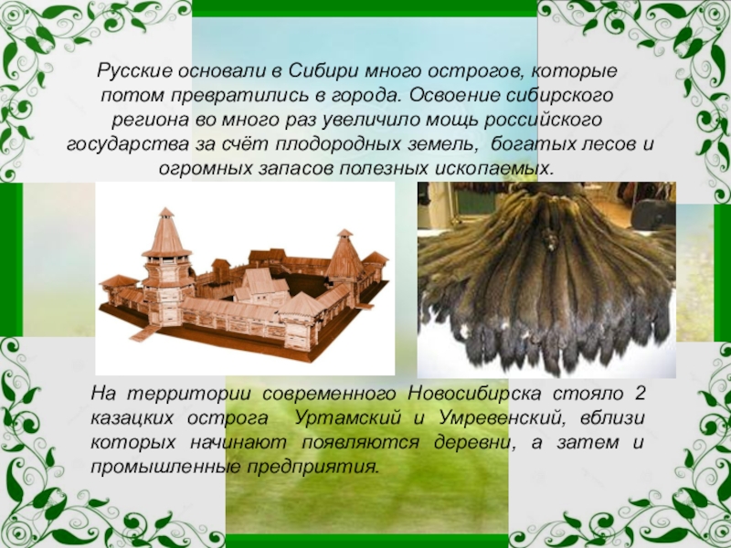 На территории современного Новосибирска стояло 2 казацких острога Уртамский и Умревенский, вблизи которых начинают появляются деревни, а затем и промышленные предприятия.
