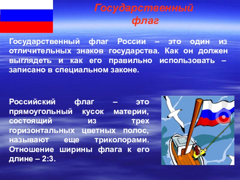 Государственный флаг России – это один из отличительных знаков государства. Как он должен выглядеть и как его правильно использовать – записано в специальном законе.