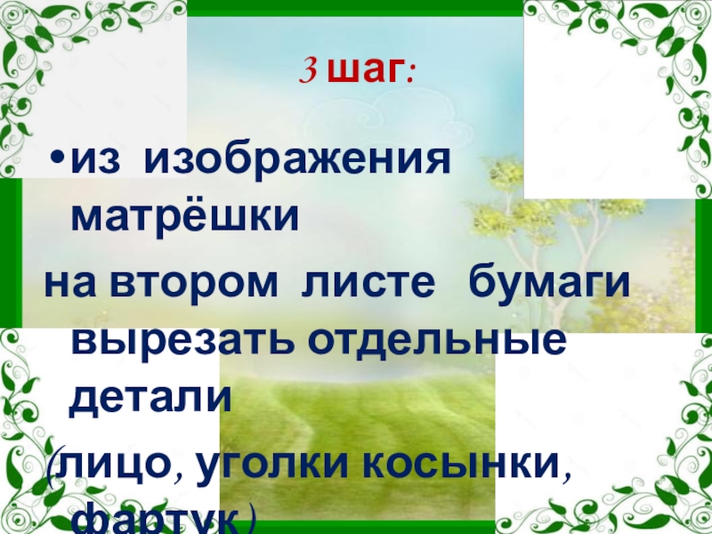 шаг: одно изображение матрёшки вырезать полностью по контуру