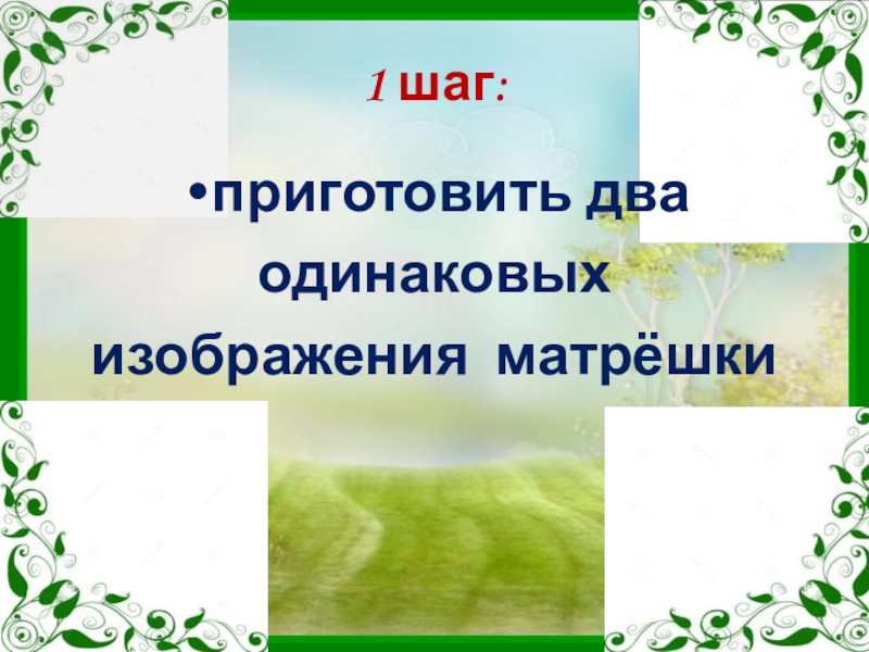 1 шаг:  приготовить два одинаковых изображения матрёшки
