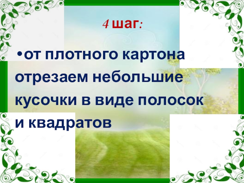 4 шаг: от плотного картона отрезаем небольшие кусочки в виде полосок и квадратов