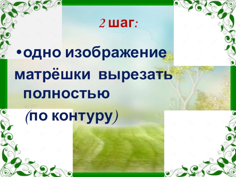 2 шаг:одно изображение матрёшки вырезать полностью  (по контуру)