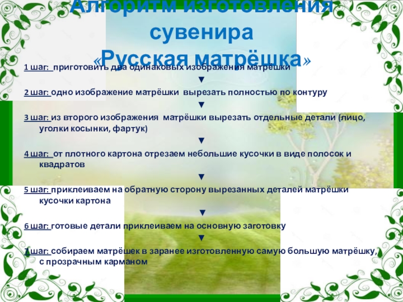 Слайд 7Алгоритм изготовления сувенира «Русская матрёшка»