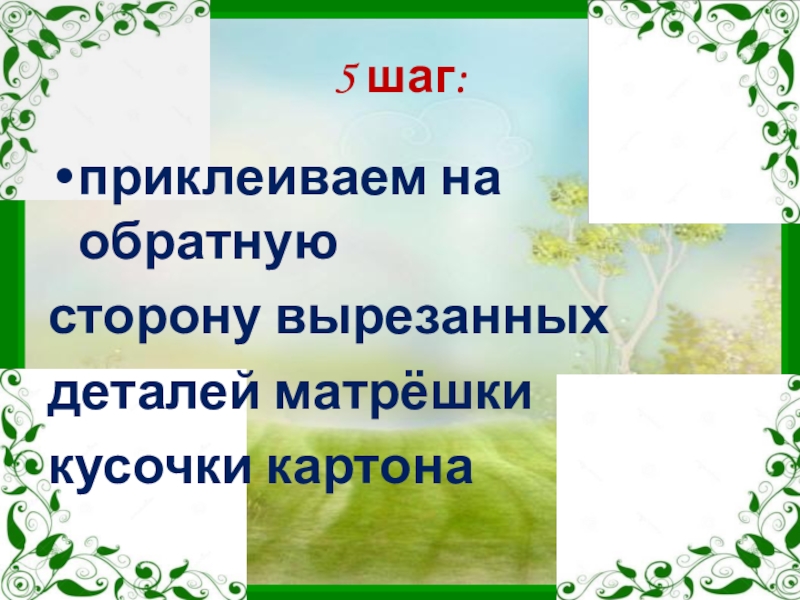 5 шаг:приклеиваем на обратную сторону вырезанных деталей матрёшки кусочки картона
