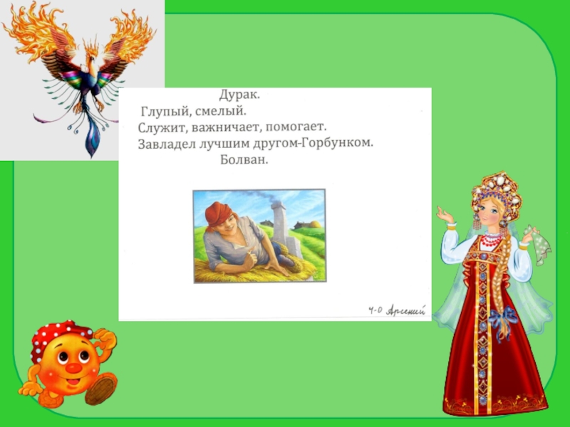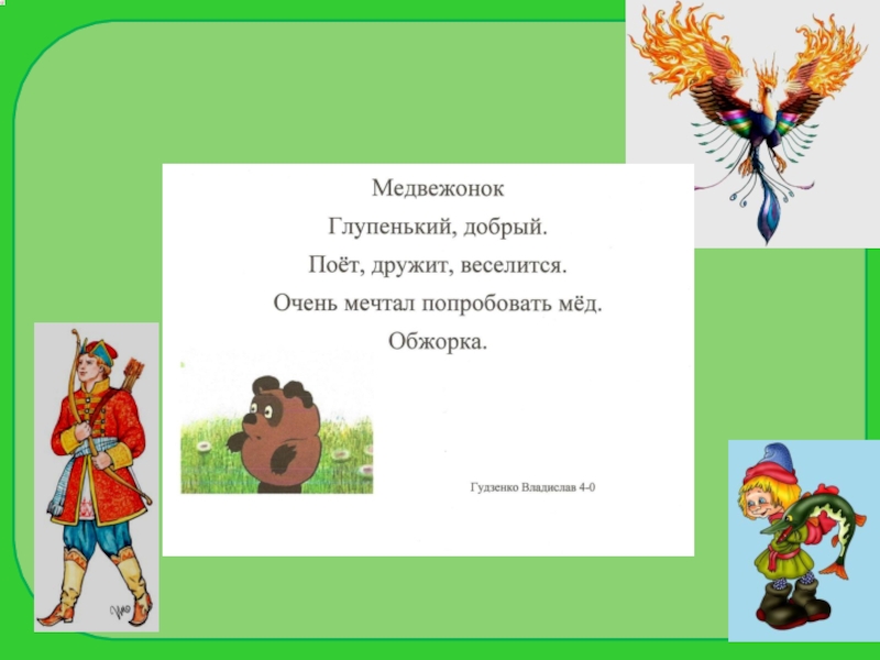 Синквейн«Угадай литературного героя».Работы учащихся 4-о класса.Учитель : Артемьева О.В.