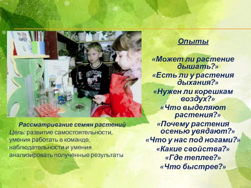 Рассматривание семян растений