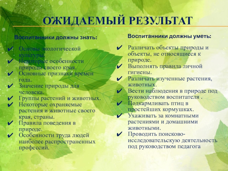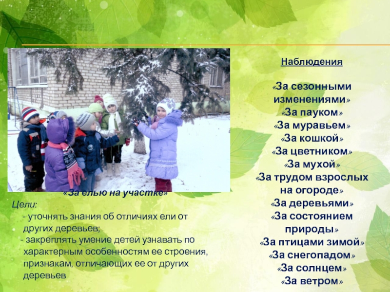 Вести наблюдения в природе под руководством воспитателя .