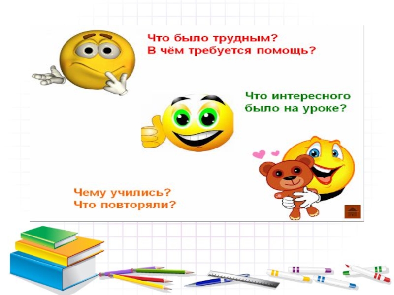 В последующих классах к алгоритму добавляются новые вопросы, например: «какую себе поставишь отметку?» и т.д.