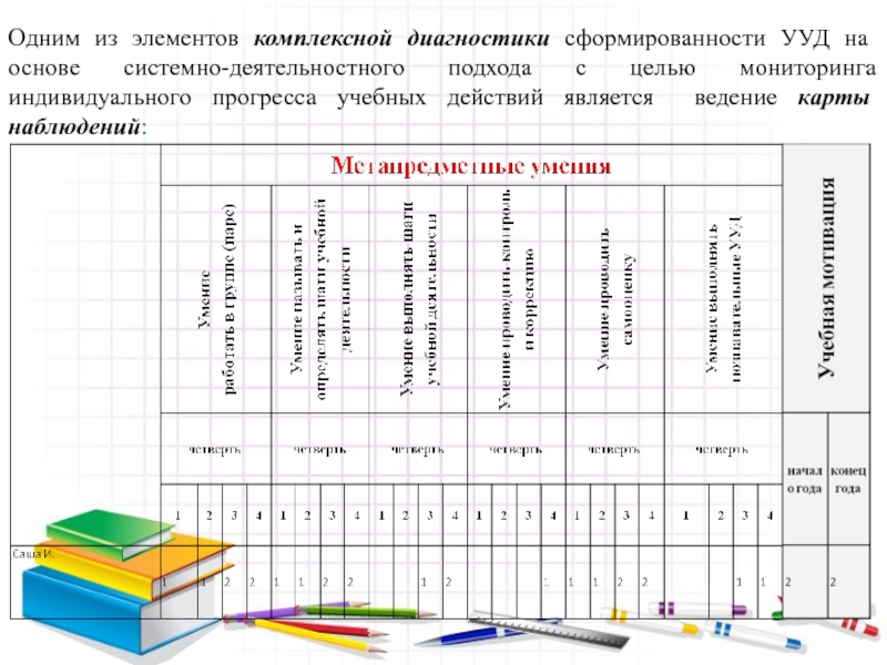 с целью мониторинга индивидуального прогресса учебных действий является ведение карты наблюдений: