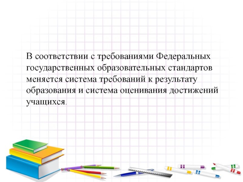 Слайд 2В соответствии с требованиями Федеральных государственных образовательных стандартов меняется система требований