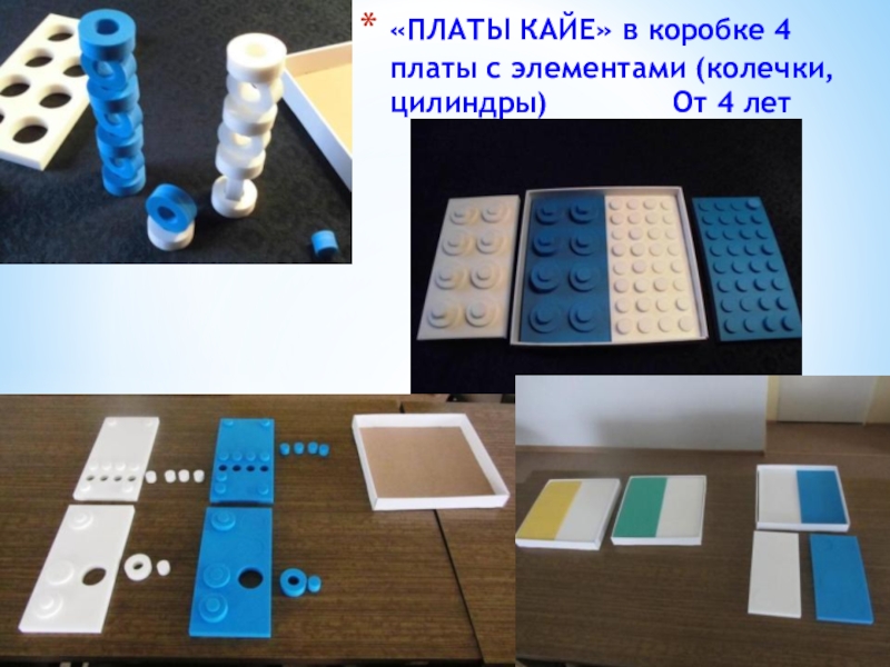 Слайд 56«ПЛАТЫ КАЙЕ» в коробке 4 платы с элементами (колечки, цилиндры)