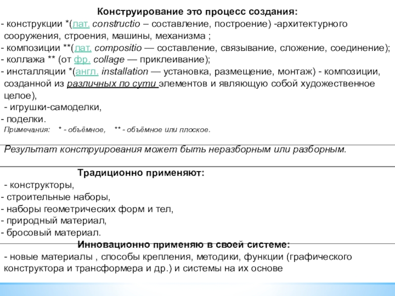 - новые материалы , способы крепления, методики, функции (графического конструктора и трансформера и др.) и системы на их основе