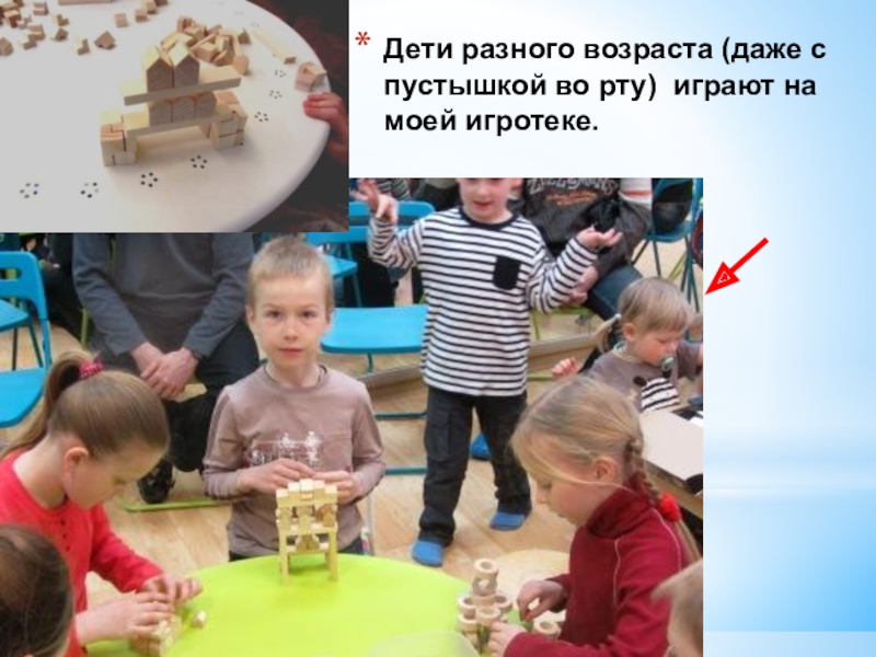 Слайд 47Дети разного возраста (даже с пустышкой во рту) играют на моей