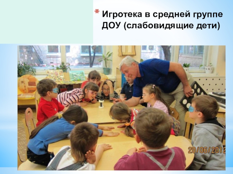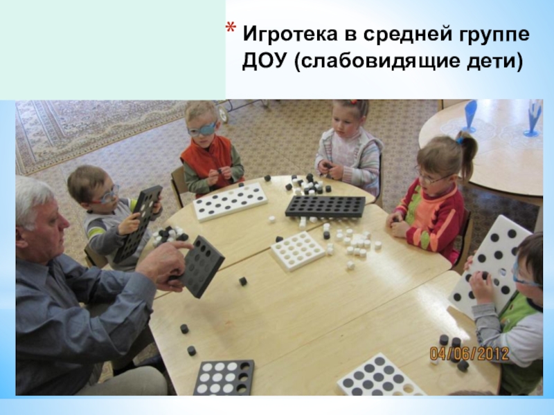 Слайд 70Игротека в средней группе ДОУ (слабовидящие дети)