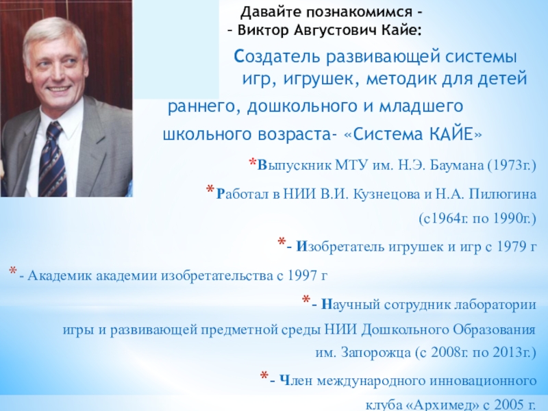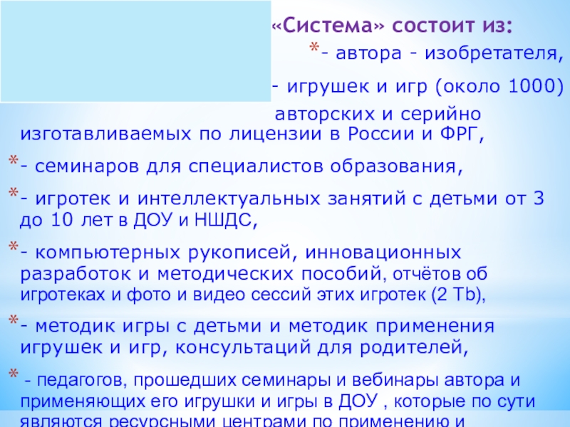 Создатель развивающей системы игр, игр, игрушек, методик для детей